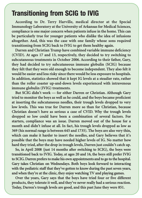 With the FDA approval of SCIG therapy in 2006, many patients now have the choice between SCIG and IVIG infusions. Understanding the differences between the two treatment modalities will help healthcare providers recommend the right one for their patients.