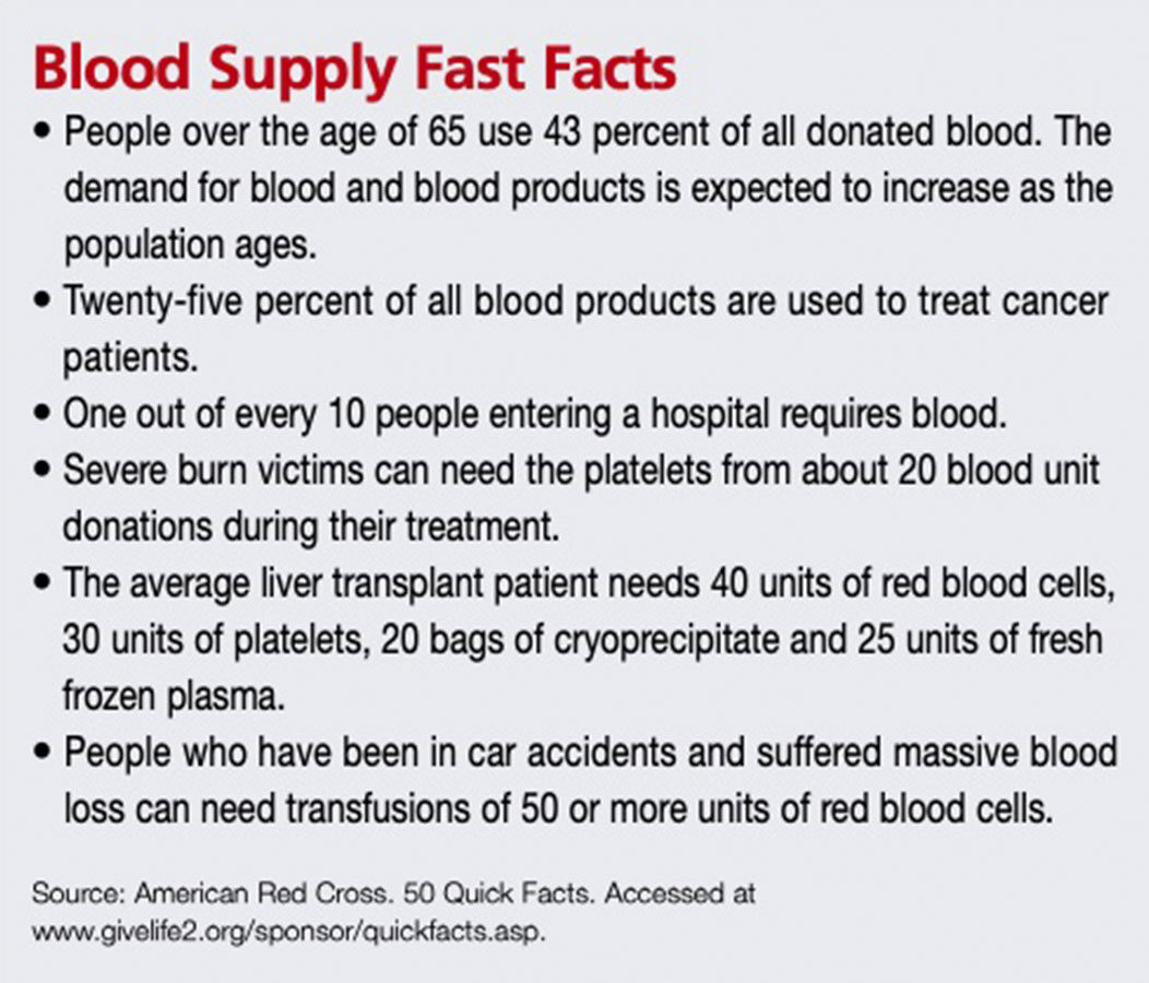 - American Red Cross. 50 Quick Facts. Accessed at www.givelife2.org/sponsor/quickfacts.asp.