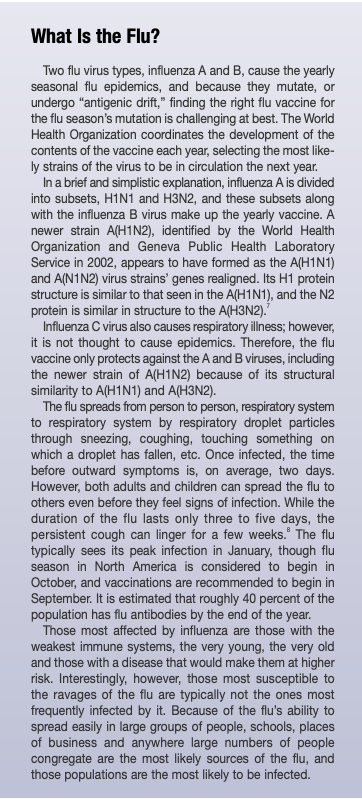 Each year, influenza affects from 5 percent to 20 percent of the population, claiming 30,000 to 40,000 lives and requiring hospitalization of more than 200,000 in the U.S. alone. Globally, the death rate exceeds 500,000. And, a study conducted by the Centers for Disease Control and Prevention (CDC) found that there is an upward trend in the rates of flu incidence.1 The death rate between 1972 and 1992 doubled in just 20 years — an especially alarming trend considering in 1997, flu vaccine coverage had reached 65 percent of those most vulnerable. The intensity of flu epidemics is also increasing. In the 1970s and 1980s, the average length of an epidemic period was 8 to 10 weeks. Today, it is closer to 16 to 18 weeks.2 All of this begs several questions: As health practitioners, is our current vaccination plan working? If so, why does the flu continue to spread so quickly? Is there a better way?